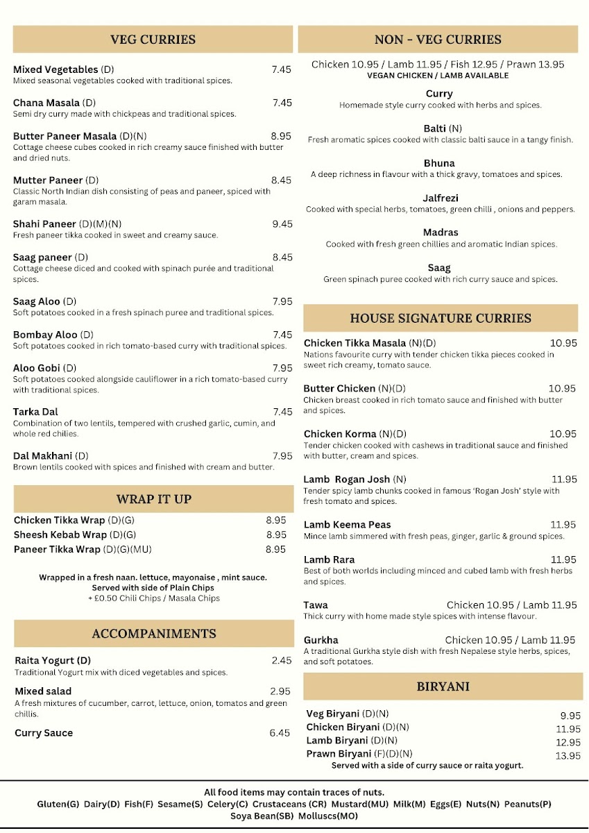 Introducing the Menu at The Three Crowns Indian Restaurant and Bar